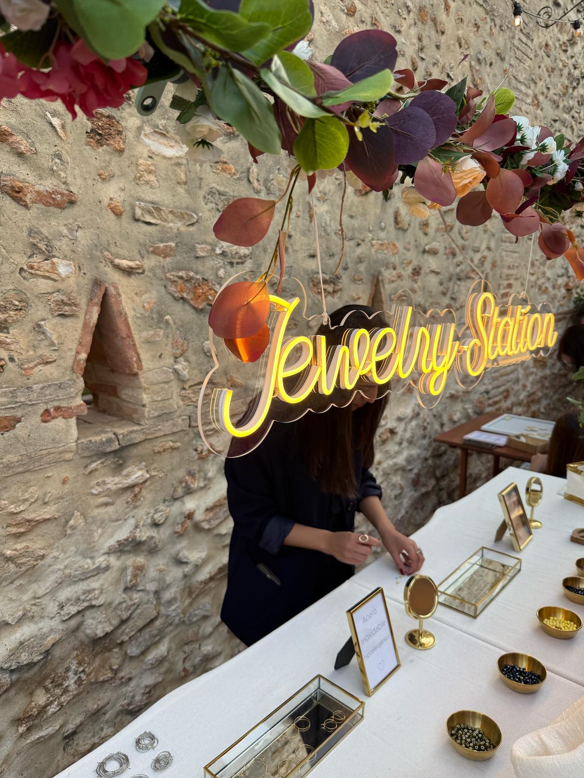 Te ofrecemos jewelry station (mesa-estación de joyas) como alternativa original y exclusiva que seguro encantará a tus invitadas. ¡Se llevarán a casa una joyita que dura para siempre!